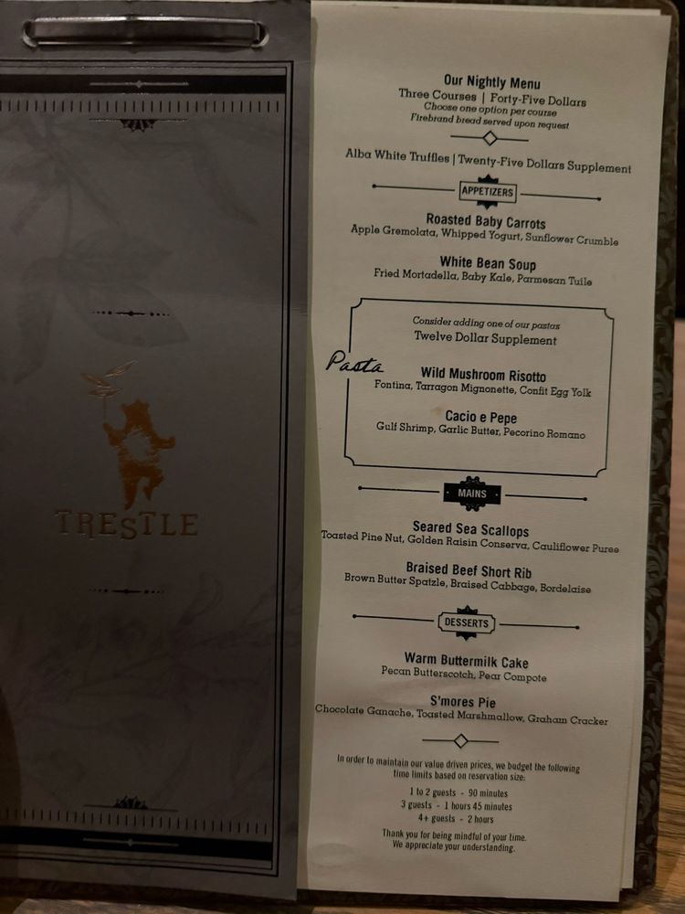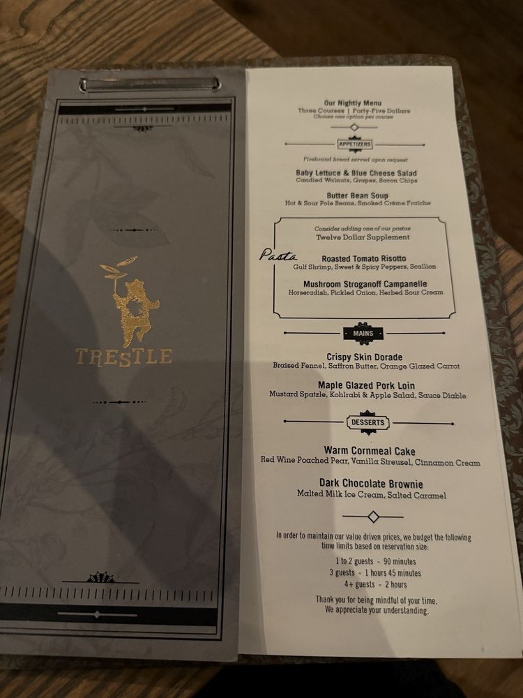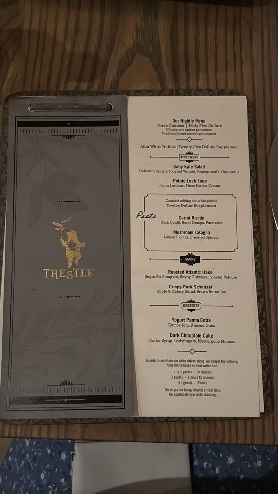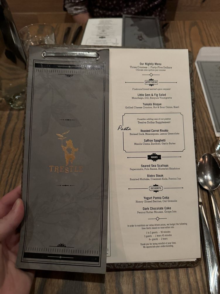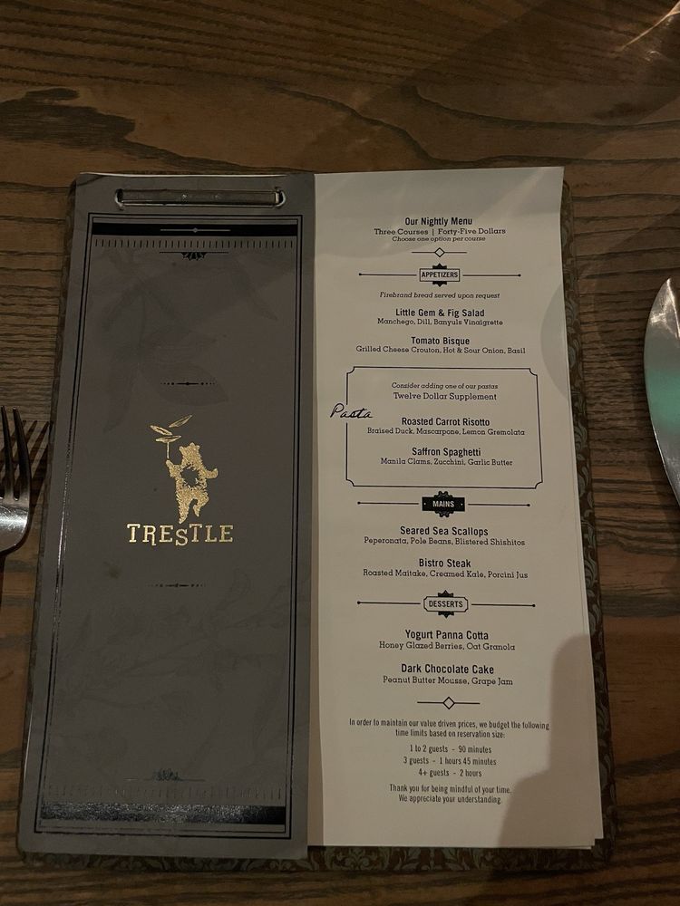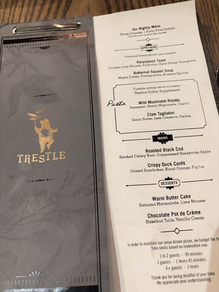 Embrace Trestle's charm; it's not just a meal but a seasonally inspired journey through flavor.